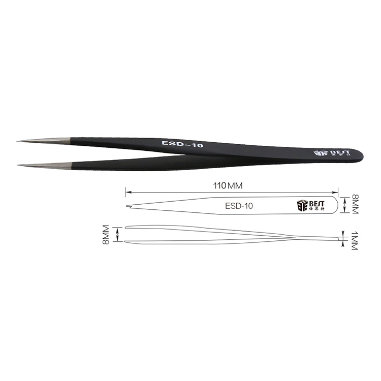 ? 產品名稱: 優(yōu)質鋼化高級防靜電鑷子? 產品型號: BST-ESD-10? 產品類別: 鑷子系列